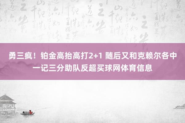 勇三疯!铂金高抬高打2+1 随后又和克赖尔各中一记三分助队反超买球网体育信息