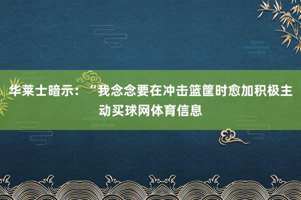 华莱士暗示:“我念念要在冲击篮筐时愈加积极主动买球网体育信息