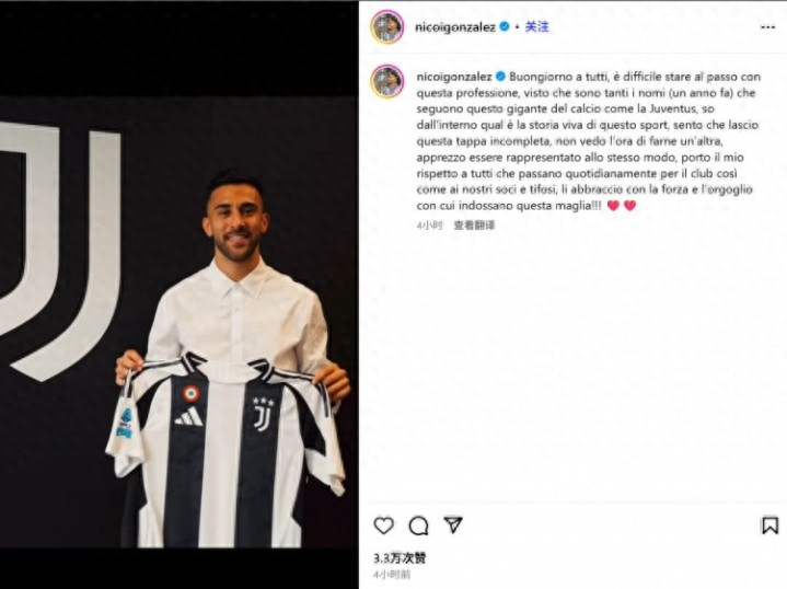 直播吧9月2日讯 尤文边锋冈萨雷斯一经官宣加盟马竞,他也通过社媒发文向斑马军团告别: 民众好,从事足球畅通员这份工作的糊口果真少顷万变。尤其议论到我(一年前)加盟尤文图斯这么的足球巨东说念主后新意识了许多东说念主。 我从俱乐部里面亲身感受到了这项畅通的鲜嫩历史,也自愿这段旅程并不够圆满,但一经要开启新篇章了。 我很谢意能取得认同买球网体育信息,也要向逐日为俱乐部付出的扫数东说念主以及咱们的鼓动与球迷致以敬意,我将以身穿这件球衣时的力量与自爱拥抱你们!!!❤️❤️