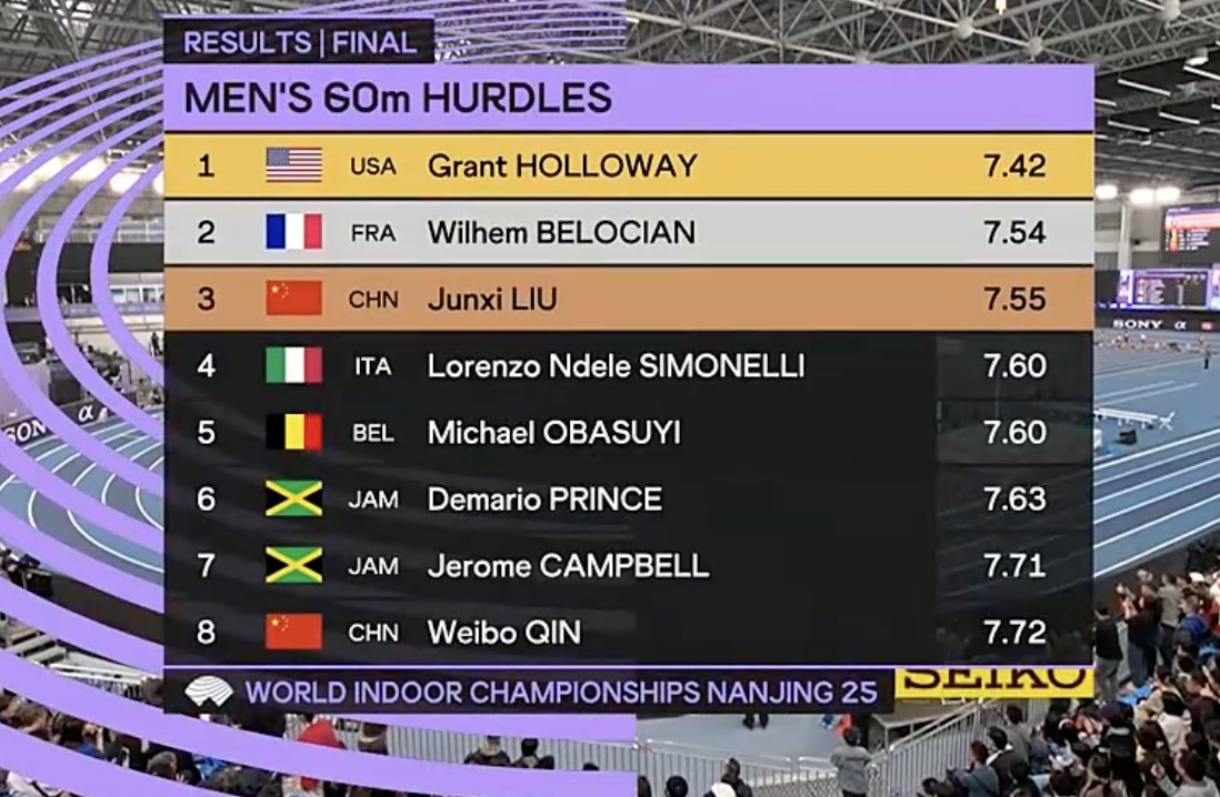 好意思国选手霍洛威达成三连冠体育集锦,他成为历史上初次作念到此举的男人60米栏选手。