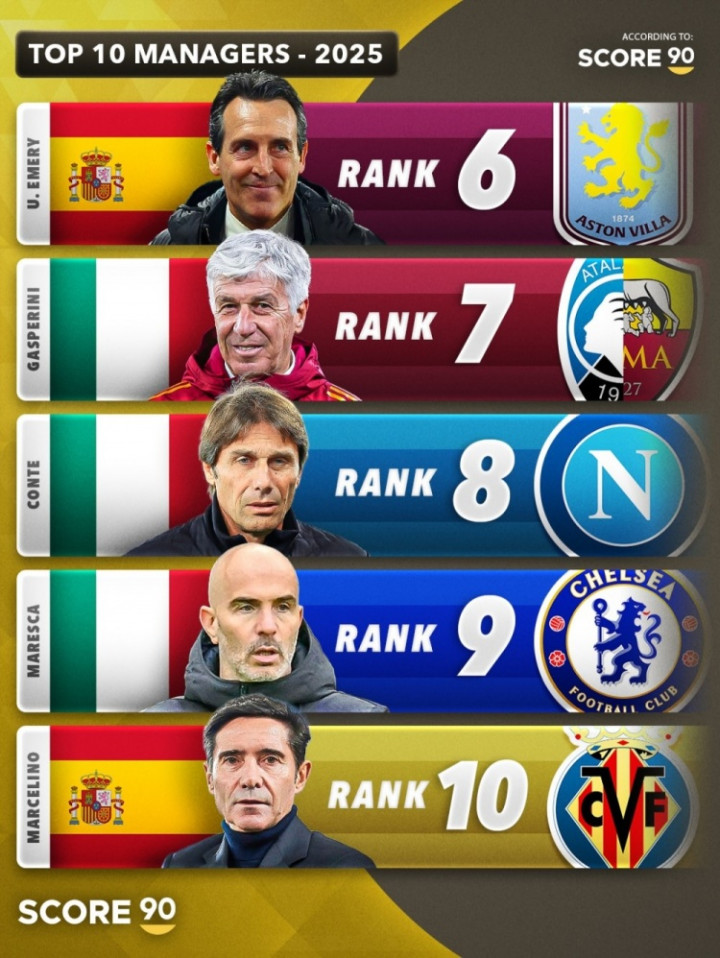 以下是Score90评2025年年度最好主帅榜单: