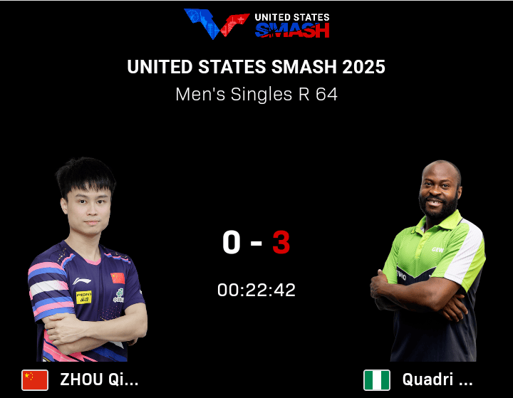 尼日利亚猛将阿鲁纳活着乒赛大比分4-2力克德国一哥杜达,晋级16强,寰球名次反超阿萨尔,重返非洲一哥。