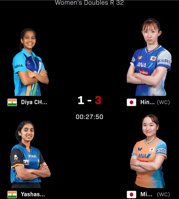 女双1/16决赛,伊藤好意思诚/早田希娜3-1奇塔莱/格尔帕德【9-11,11-7,11-3,11-5】