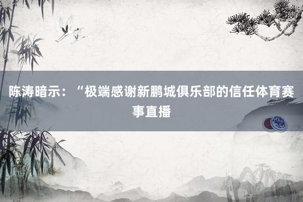 陈涛暗示:“极端感谢新鹏城俱乐部的信任体育赛事直播